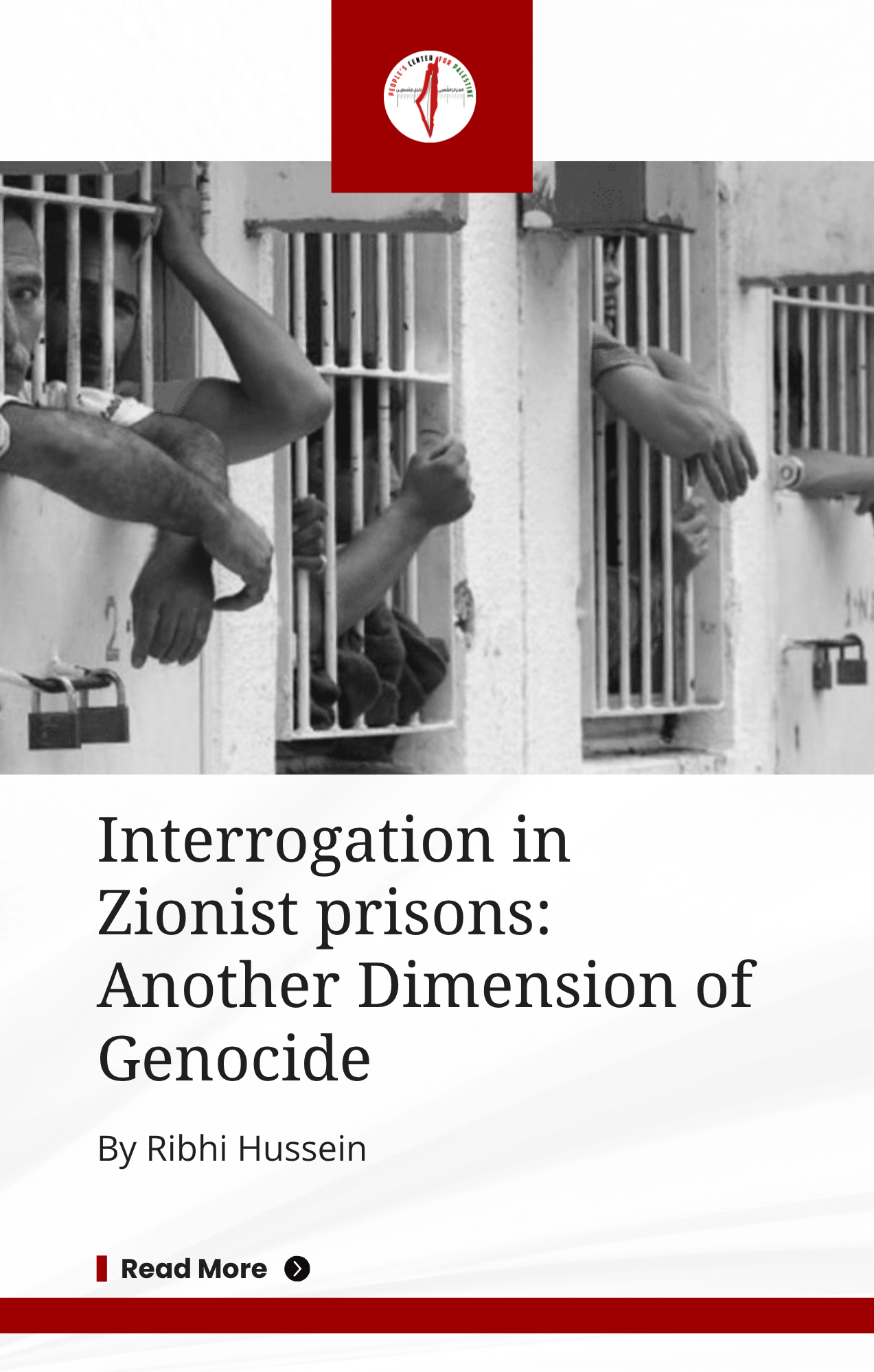 This article critically examines the use of interrogation as a form of torture in Israeli prisons. It argues that these interrogation practices are part of a broader genocidal structure, aiming to destroy Palestinian society. Hussein traces how these practices operate across stages of imprisonment and situates them within the historical context of incarceration and national struggle, with particular attention to Gaza.