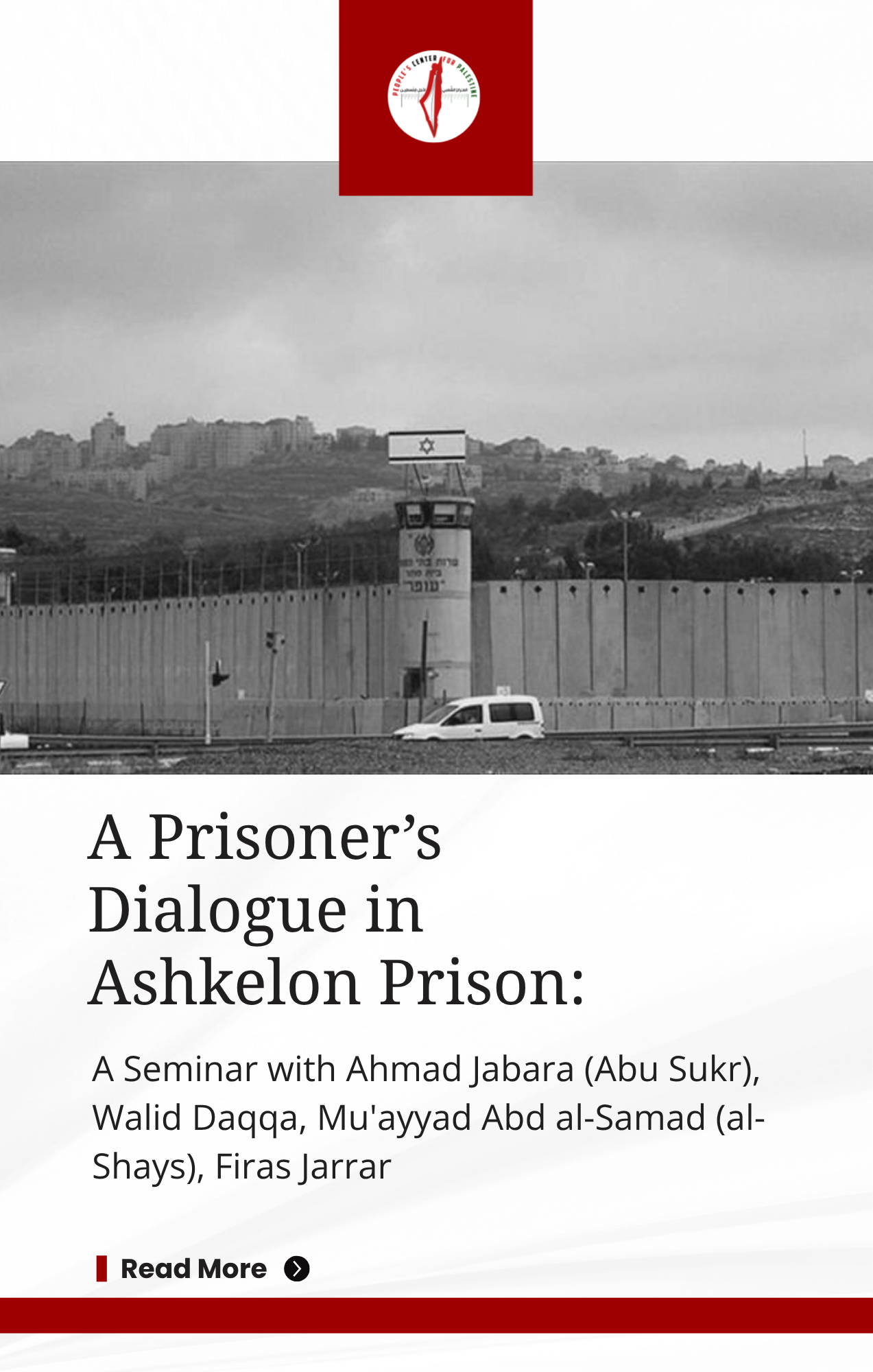A Prisoner’s Dialogue in Ashkelon Prison: A Seminar with Ahmad Jabara (Abu Sukr), Walid Daqqa, Mu'ayyad Abd al-Samad (al-Shays), Firas Jarrar
